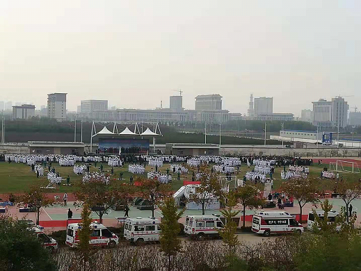 为普及卫生应急知识技能,提升全市人民卫生应急素养和自救互救能力,11月14日下午,周口市全民自救互救卫生应急知识技能“十县百场”普及活动启动仪式在在线买世界杯平台举行。周口市副市长张广东、在线买世界杯平台校长李清臣、和市卫计委、市应急办、市红十字会等单位人员及在线买世界杯平台4000多名师生参加了启动仪式。