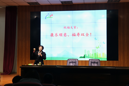 刘华玲主任以《保持健康生活方式 掌控幸福长寿钥匙》为题,从高血压病的防治着手,结合生活实际,讲解了健康对人生的重要意义以及科学运动、合理饮食、良好心态等对健康的重要作用。鼓励大家要养成良好生活习惯,消除不良嗜好,努力保持一个健康的身体。整个讲座紧贴现实生活,条理清晰,内容丰富,分析深刻透彻,说理深入浅出。引起了与会师生的强烈共鸣。