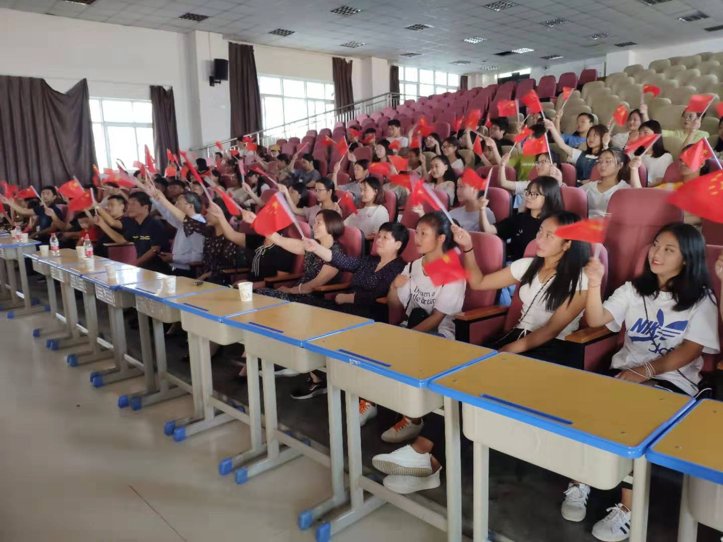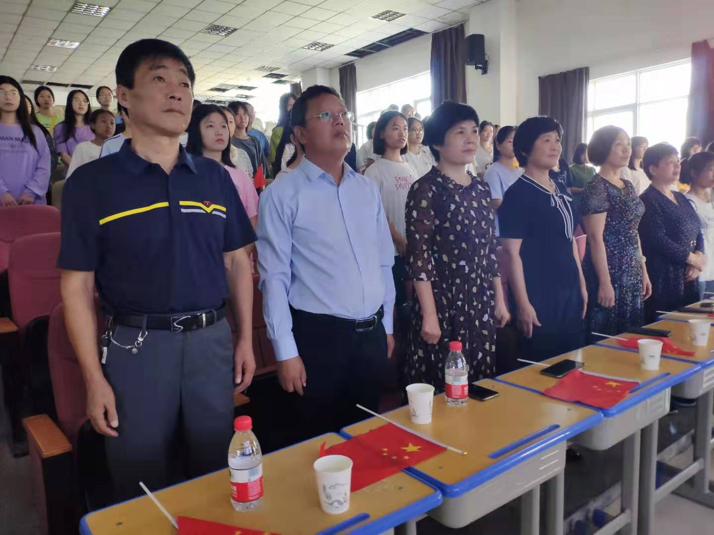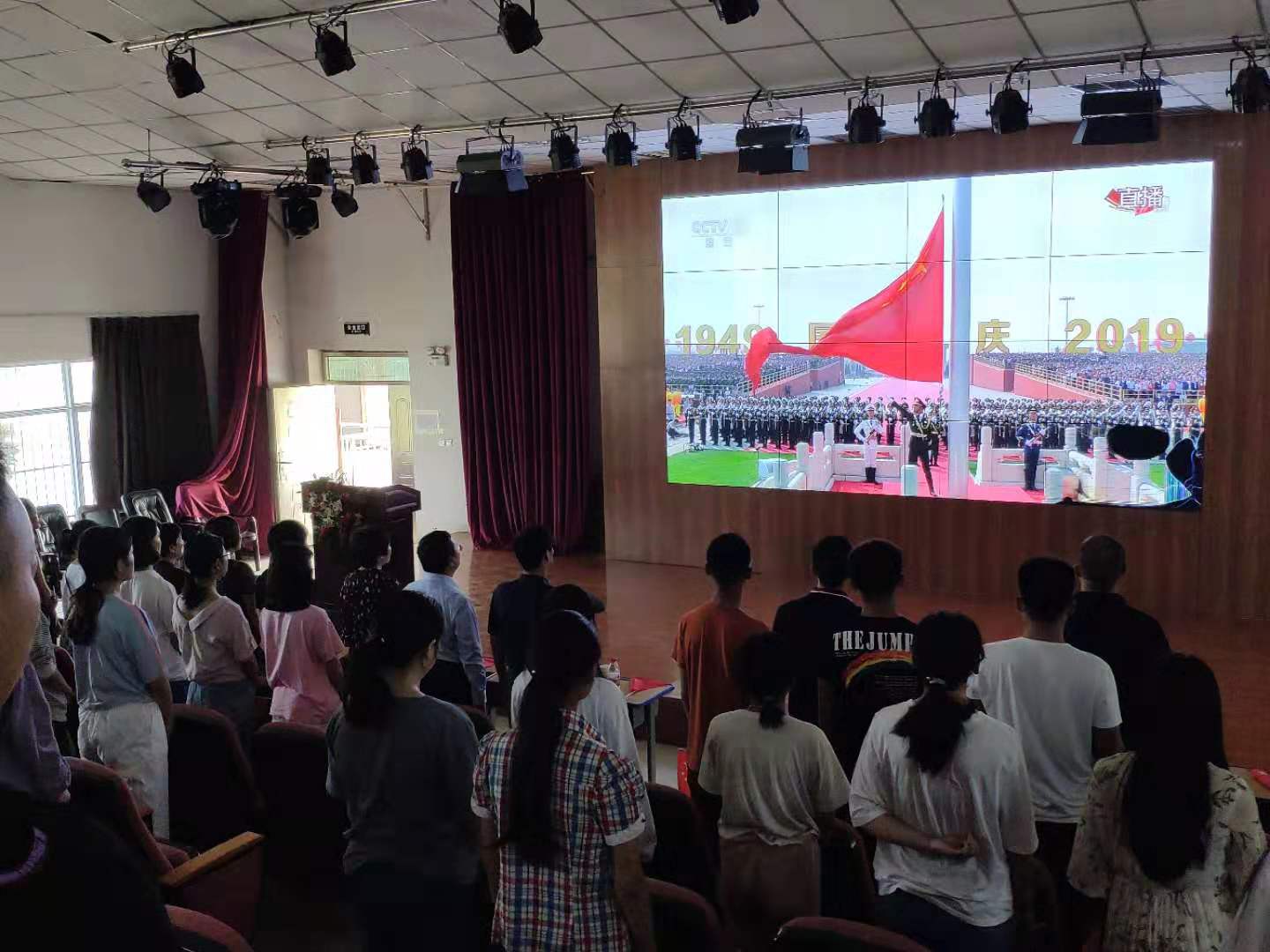 10月1日上午,庆祝中华人民共和国成立70周年大会在北京天安门广场隆重举行。文昌校区在线买世界杯平台、护理学院领导班子、中层干部陪同150名留校学生一起收听收看庆祝中华人民共和国成立70周年大会实况直播。活动开始之前,在线买世界杯平台党总支书记周文一对“十一”假期期间留校学生的安全、住宿、饮食、外出购物等事项作出提醒和要求。