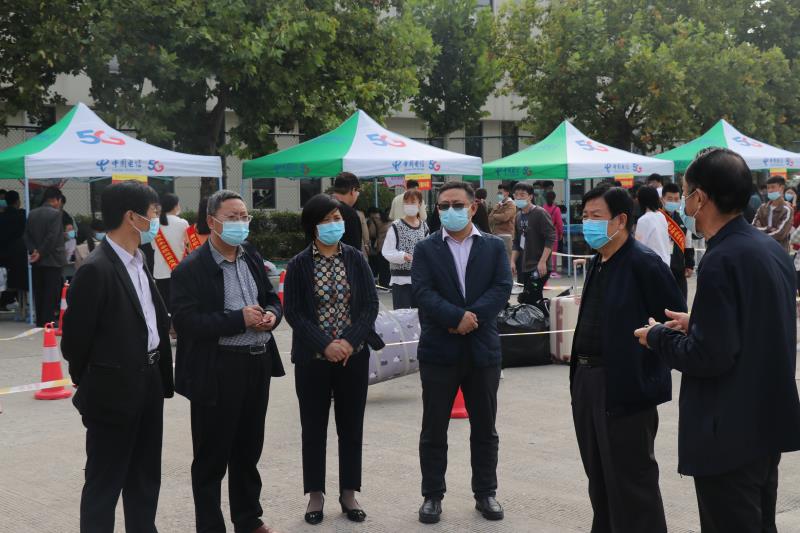 校党委书记刘士欣、李森副书记等领导深入迎新现场,亲切慰问工作人员、学生以及家长,详细了解迎新工作安排和新生报到情况,嘱咐大家在工作中一定要认真细致,积极为新生同学及家长提供热情、温馨、周到的服务。