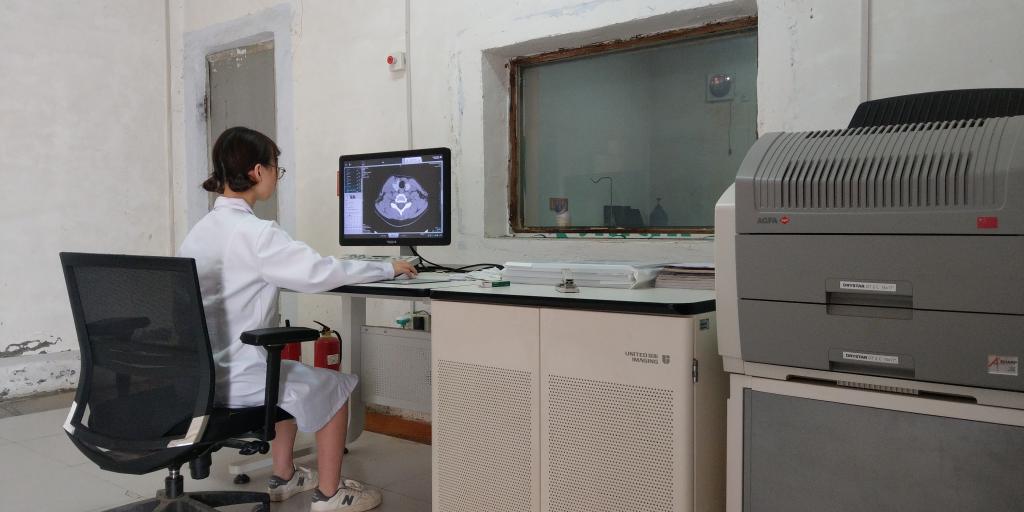 学生在实验课上操作CT机进行操作训练