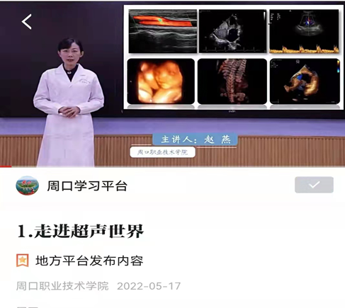近日,在线买世界杯平台赵燕老师团队推出《超声诊断学》课程成功入选学习强国”慕课,此前,该课程已经入选省级精品线上开放课程项目,在智慧职教MOOC学院(慕课)网络播发。