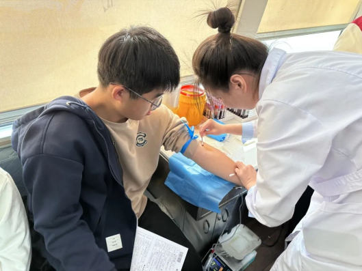 同学们利用课间时间,早早来到献血现场,按照指引有序排队,依次进行测量血压、采血检验、血型鉴定等流程。作为医学生,同学们更清楚无偿献血对救助生命的重要意义,都愿意尽自己的微薄之力,无偿献血,为生命接力。同学们看着血液从自己的身体流出,想着它或许能在某个生命垂危之人的身体里流淌,重燃希望之光,就觉得这一切如此有意义。这献出的不仅是一份血液,更是生命的希望。