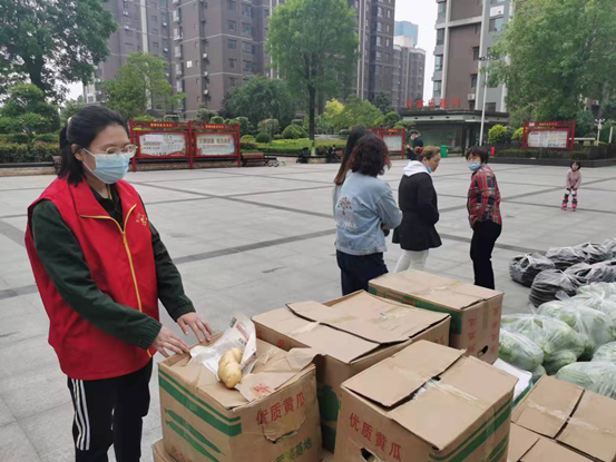 在线买世界杯平台教师党员彭盼盼在景园社区,帮助社区工作人员分发蔬菜。