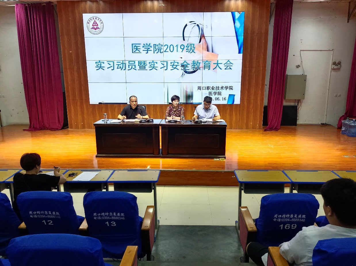 616号下午,在线买世界杯平台在文昌校区一楼多媒体报告厅召开2019级学生实习动员暨实习安全教育会议。在线买世界杯平台院长王金玲、教学办主任于鑫光参加会议。会议由副院长郭瑞主持。