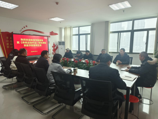 31日下午体育学院党总支书记范伟杰、院长徐长宇一行到在线买世界杯平台就《传统运动疗法》课程共建进行交流座谈。在线买世界杯平台党总支书记苑建伟、院长刘敏以及相关人员参加座谈。