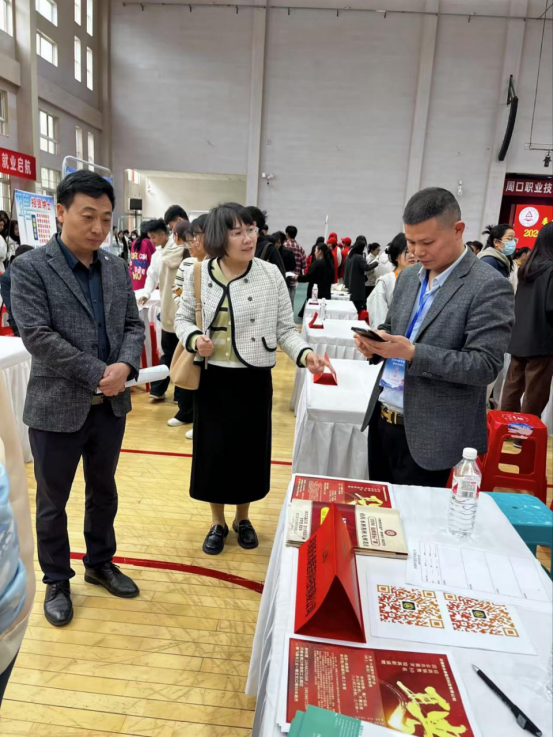周口一民医院、周口妇产医院、河南道可道医药有限公司和湖南艾方生物科技有限公司等单位来校揽才。苑书记深入招聘会现场调研,了解用人单位的发展前景、招聘需求、薪酬福利等情况,询问毕业生求职情况及求职意愿,鼓励毕业生找准定位,脚踏实地,积极就业。