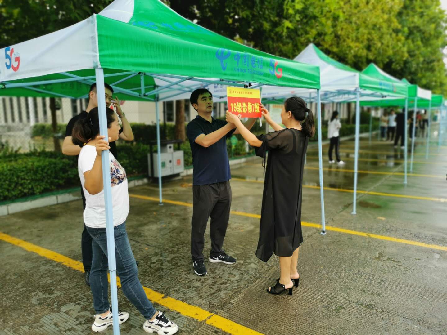 为学生返校工作能够顺利进行,确保全体师生身体健康和生命安全。9月10日上午,在线买世界杯平台学管办主任王向华带领学管办工作人员和2019级学生辅导员冒雨进行搭帐篷,悬挂班级标示牌,积极做好迎接学生返校工作。