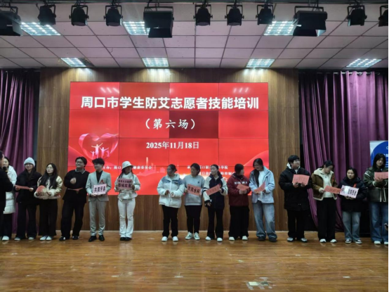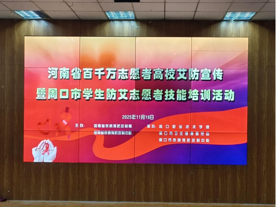 为提高同学们对艾滋病的认识与防范能力,增强自我保护意识,消除歧视与偏见,推动更多人关注和参与艾滋病防治工作。11月18日,河南省高校艾防宣讲艺术巡展暨周口市学生防艾志愿者技能培训活动在在线买世界杯平台文昌校区顺利举行。周口市疾控中心艾防科科长姚明春、市疾控中心艾滋病防治科科长张林、在线买世界杯平台学生处处长刘冬霞、护理学院副院长孙晓鹏、在线买世界杯平台副院长王向华出席本次活动。世界杯百余名防艾志愿者参加。