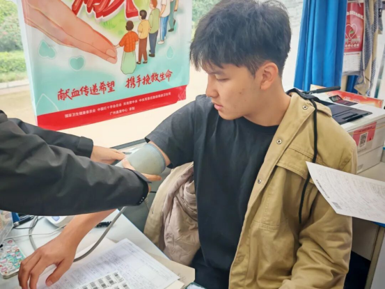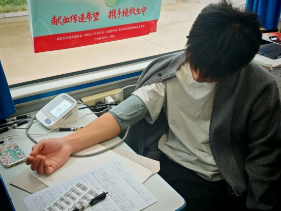 活动当天,采血车早早驶入校园,志愿者们有序布置场地,耐心引导同学们填写登记表。在医护人员协助下,同学们依次完成健康咨询、血压测量、血液初筛等流程。一股股青春热血汇聚成守护生命的力量。每一袋血液都承载着希望,每一个笑容都映照着奉献的初心。